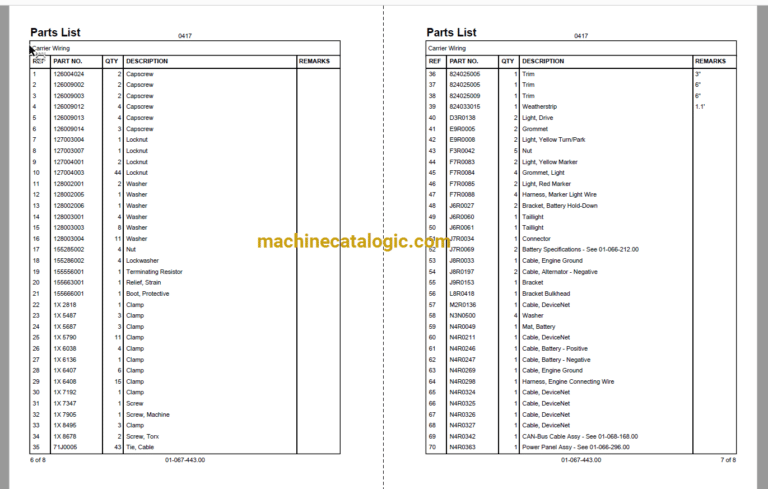 06-048-242.00 UPPER CAB WIRE HARNESS 16-000-001.00 WIRE ROPE SPECIFICATIONS