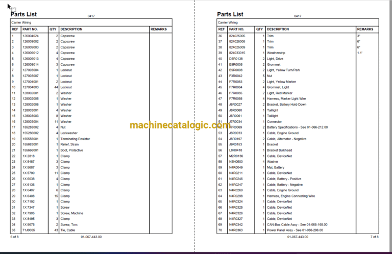 06-048-242.00 UPPER CAB WIRE HARNESS 16-000-001.00 WIRE ROPE SPECIFICATIONS