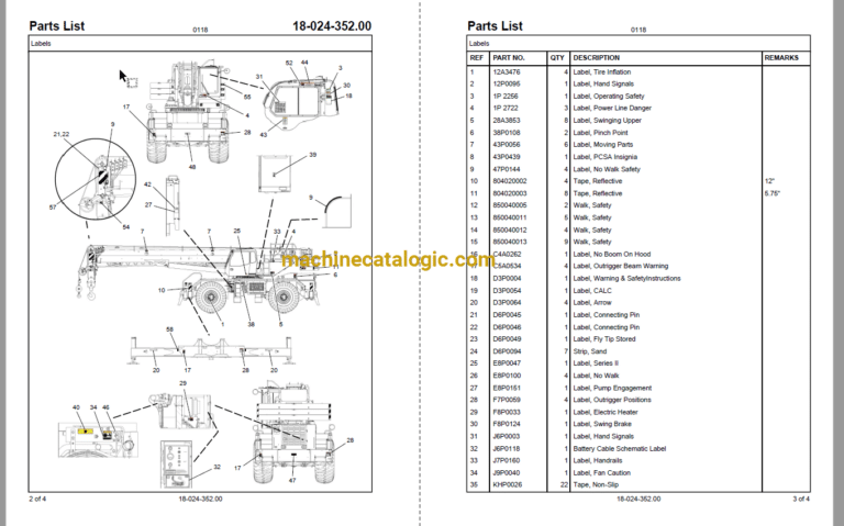 17-003-239.00 BOOM HOIST CYLINDER & LIN 18-024-289.00 COUNTERWEIGHT LABELS