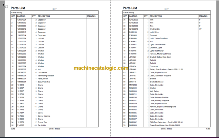 06-048-242.00 UPPER CAB WIRE HARNESS 16-000-001.00 WIRE ROPE SPECIFICATIONS