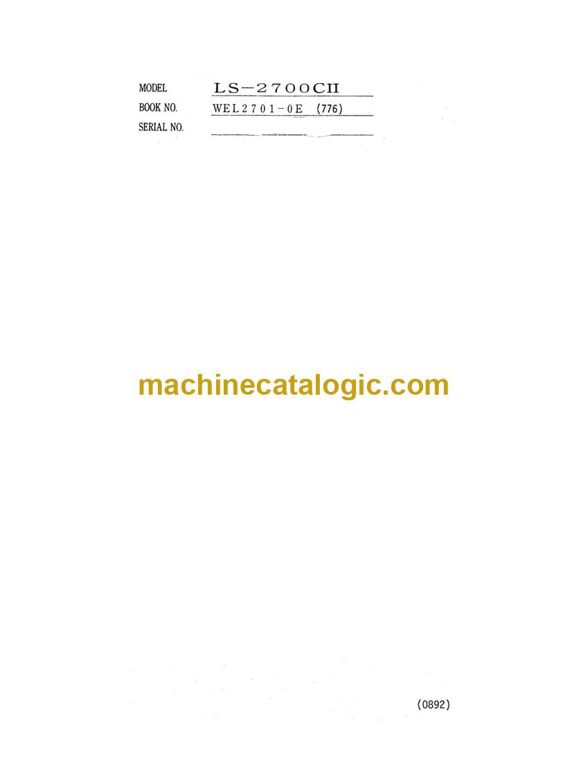 Link Belt LS2700 C Series 2 Excavator Index: