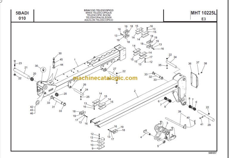 Manitou MHT 10225L PARTS CATALOGUE includes high-quality images, diagrams, and instructions to help you understand and repair spare part numbers and arrangements. This document can be printed without any restrictions and contains searchable text and bookmarks for easy navigation.