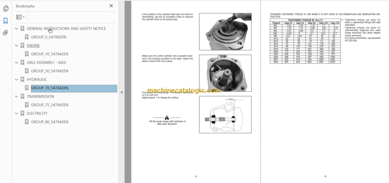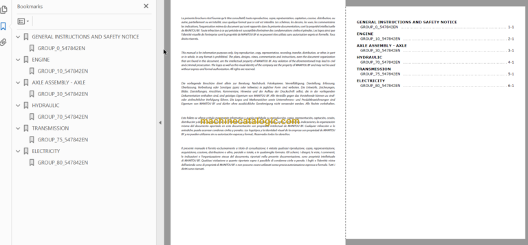TABLE OF CONTENT OF THE Manitou MLT740 Repair Manual