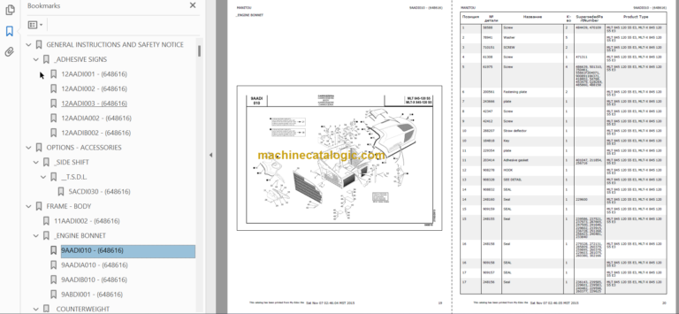 Manitou MLT 845 S5 E3 PARTS CATALOGUE includes high-quality images, diagrams, and instructions to help you understand and repair spare part numbers and arrangements. This document can be printed without any restrictions and contains searchable text and bookmarks for easy navigation.