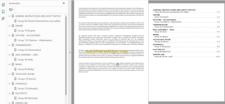 TABLE OF CONTENT OF THE Manitou MLT 940H Series 3 Repair Manual