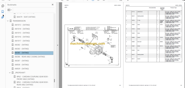 Manitou MT 1240 L TURBO Genuine Parts Catalogue includes high-quality images, diagrams, and instructions to help you understand and repair spare part numbers and arrangements. This document can be printed without any restrictions and contains searchable text and bookmarks for easy navigation.
