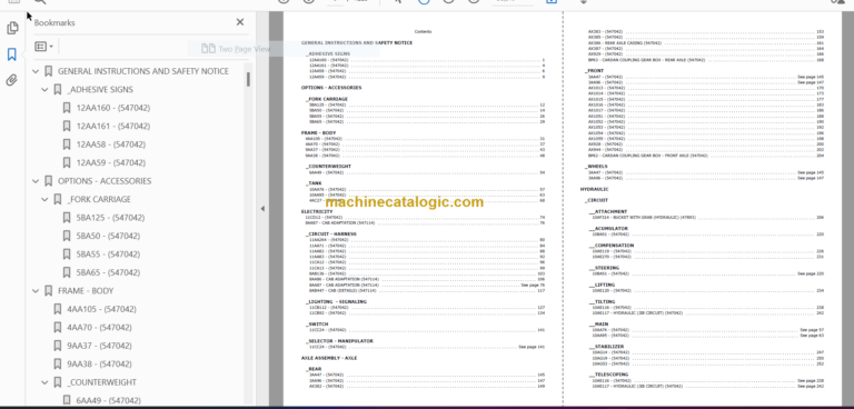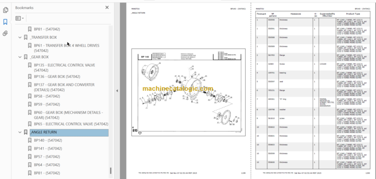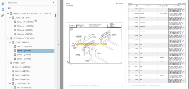 Manitou MT 1240 Parts Catalogue includes high-quality images, diagrams, and instructions to help you understand and repair spare part numbers and arrangements. This document can be printed without any restrictions and contains searchable text and bookmarks for easy navigation.