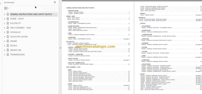 Manitou MT 1740 SL S2 Parts Catalogue includes high-quality images, diagrams, and instructions to help you understand and repair spare part numbers and arrangements. This document can be printed without any restrictions and contains searchable text and bookmarks for easy navigation.