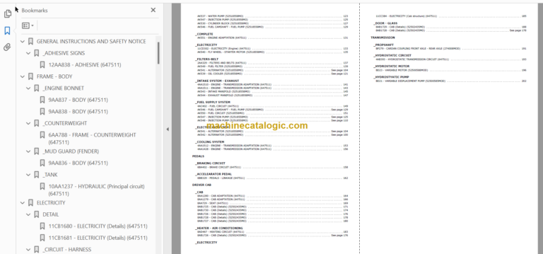 TABLE OF CONTENT OF THE MT 625H EASY 49 K ST3A S1 Parts Catalogue