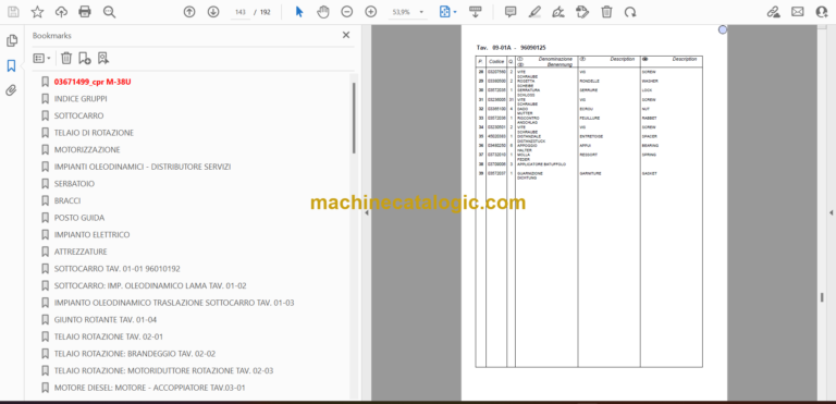 Messersi M38U Mini Excavator Spare Parts Catalog