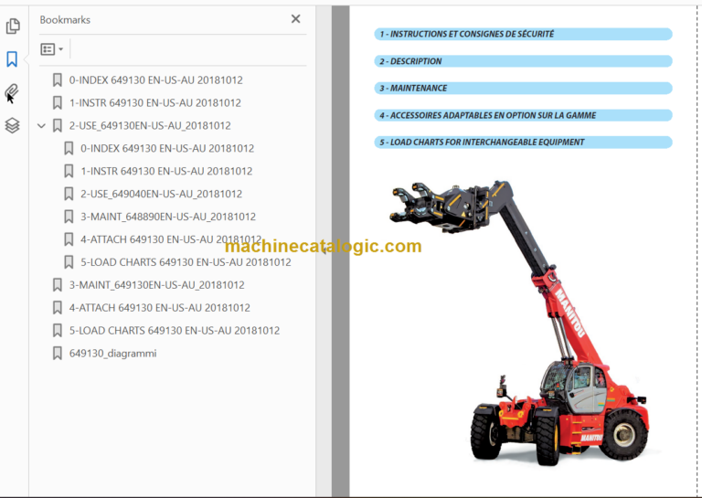 MHT 10180 MINING 129M ST4 S1 OPERATOR’S MANUAL contains high quality images, diagrams, instructions to help you to operate, maintenance, diagnostic, and repair your machine. This document is printable, without restrictions, contains searchable text and bookmarks for easy navigation.