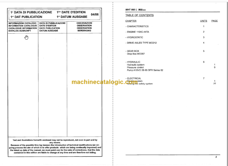 MHT 860L REPAIR MANUAL contains high quality images, diagrams, instructions to help you to operate, maintenance, diagnostic, and repair your machine. This document is printable, without restrictions, contains searchable text and bookmarks for easy navigation.