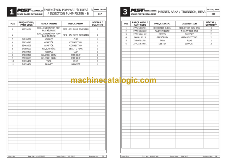 MST 14-18 m Telehandler Spare Parts Catalogue (EN-TR) (414957100)