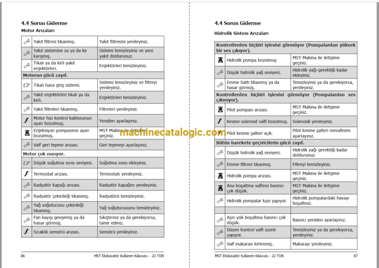 MST Ekskavatör Kullanım Kılavuzu – 22 TON 7