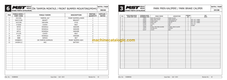 MST 544, 542 Backhoe Loader Spare Parts Catalogue (EN-TR) (542899400)