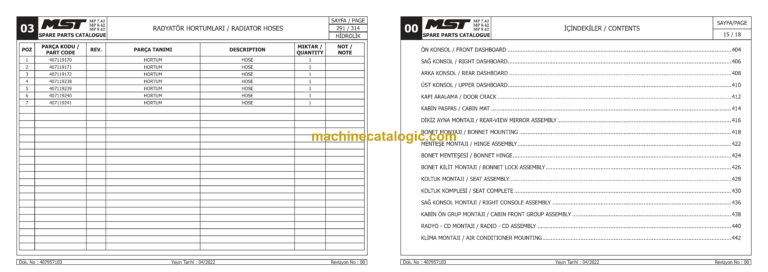 MST 7.42-125, 8.42-125, 9.42-125 Telehandler Spare Parts Catalogue (EN-TR)