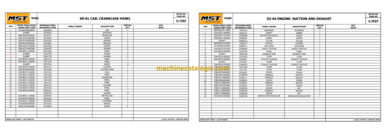 MST M28U Mini Excavator Spare Parts Catalogue (EN-TR)