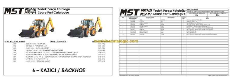 MST M544 Backhoe Loader Spare Parts Catalogue (EN-TR)