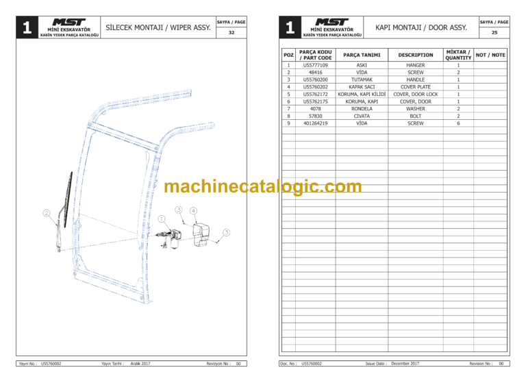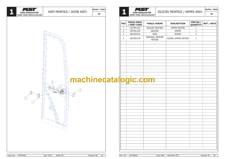 MST M55 Mini Excavator Spare Parts Catalogue (EN-TR)