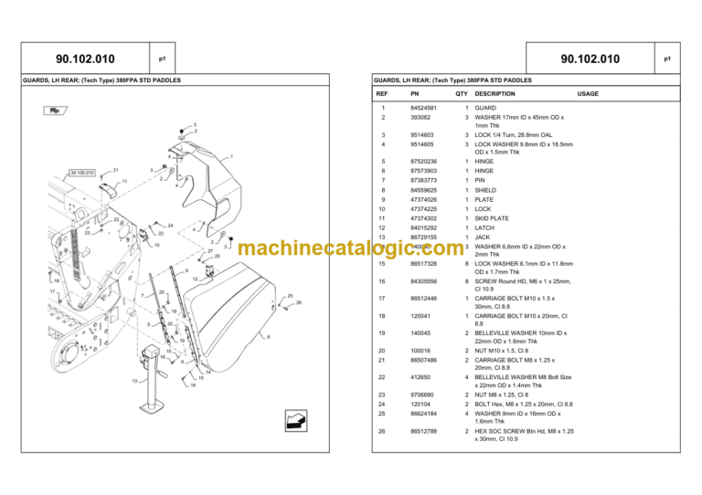 New Holland 380FPA SP Forage Pick-up Head Service Parts Catalogue