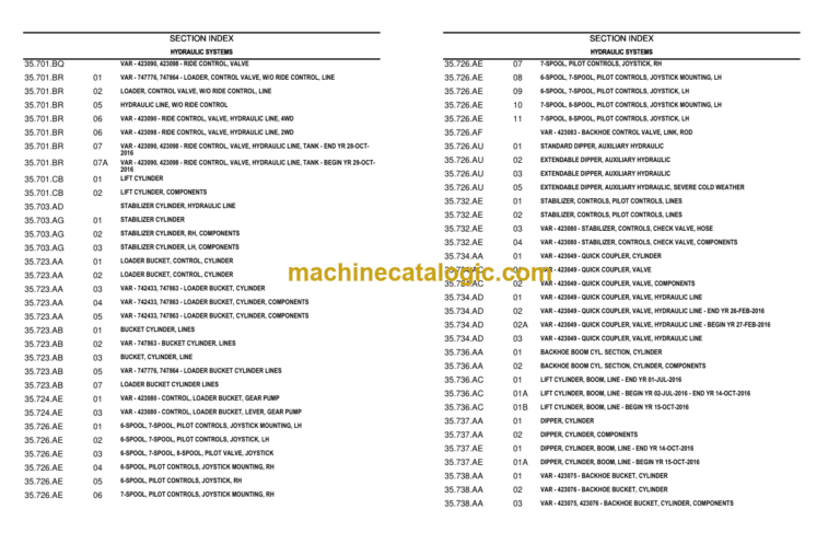 00.000.35 07 PICTORIAL INDEX – HYDRAULIC SYSTEMS