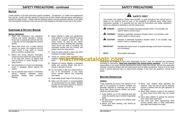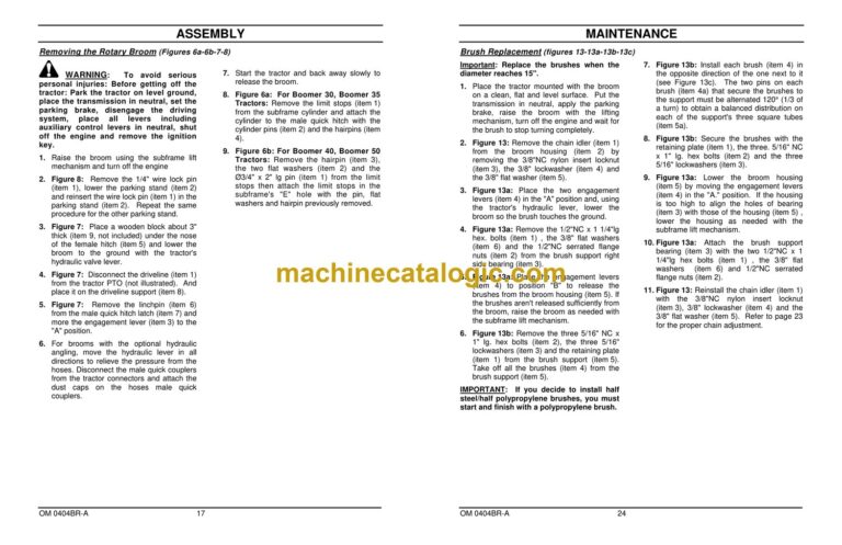 New Holland 72CO 72” Rotary Broom #715350056 For Boomer 30, Boomer 35, Boomer 40, Boomer 50 Operators Manual
