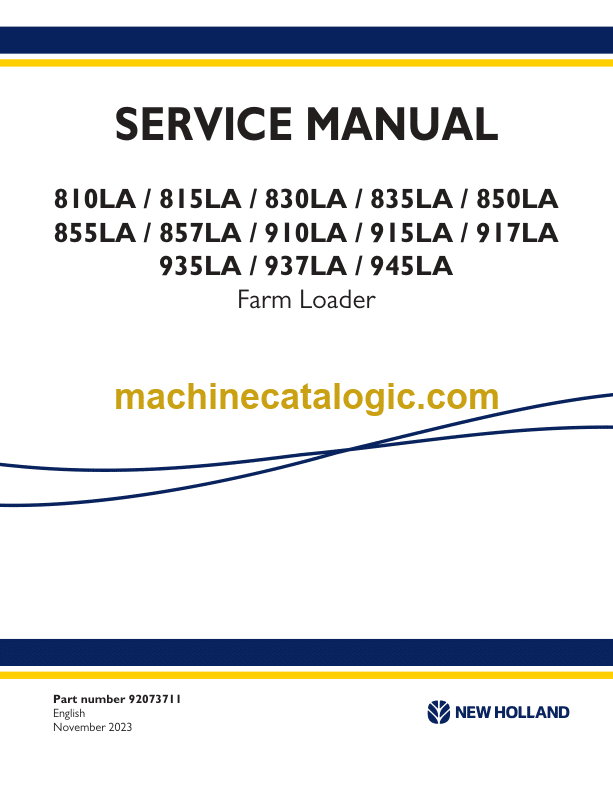 New Holland 810LA, 815LA, 830LA, 835LA, 850LA, 855LA, 857LA, 910LA, 915LA, 917LA, 935LA, 937LA, 945LA Farm Loader Service Manual