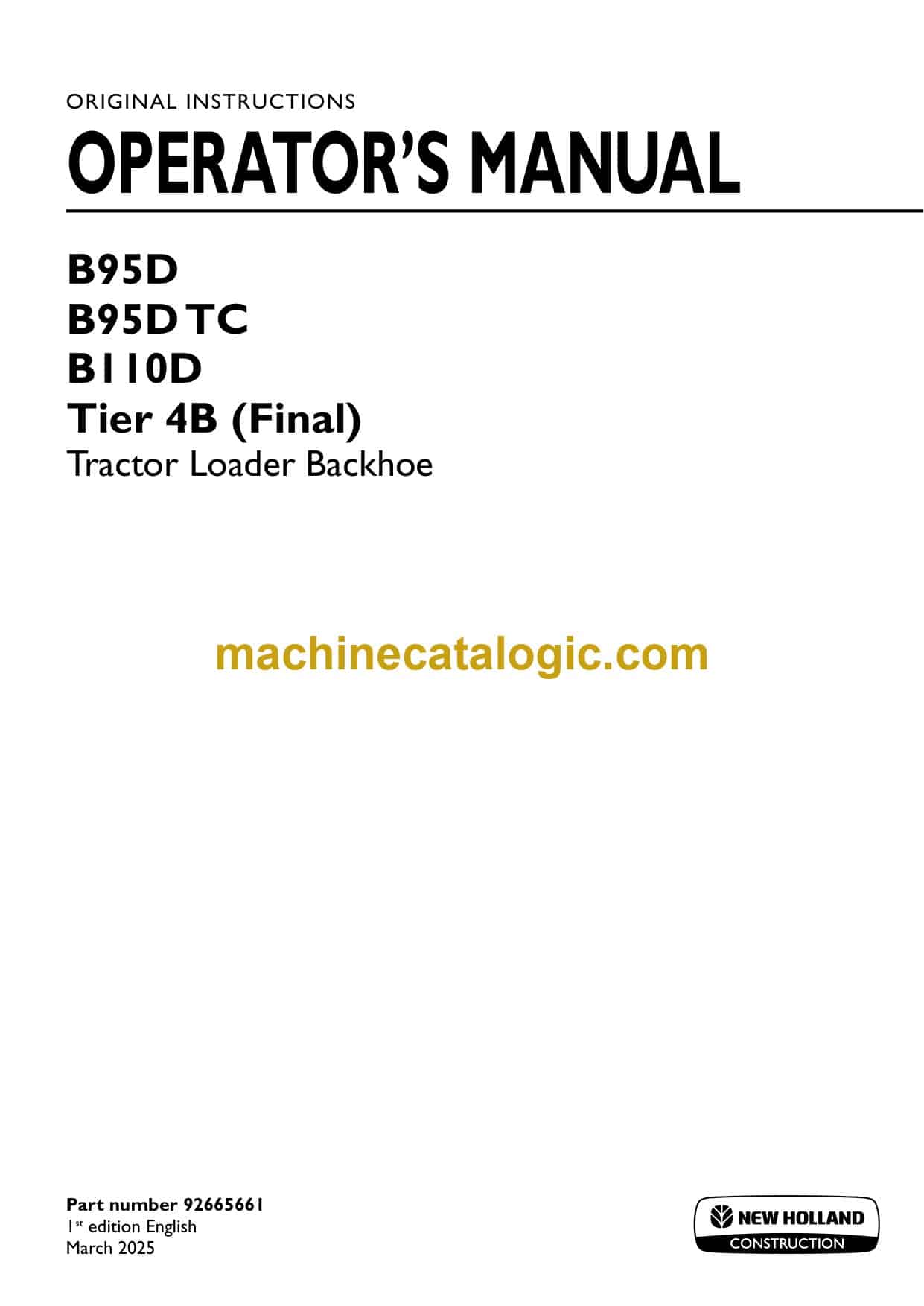 Model: B95D, B95DTC, B110D Tier 4B Final Tractor Loader Backhoe