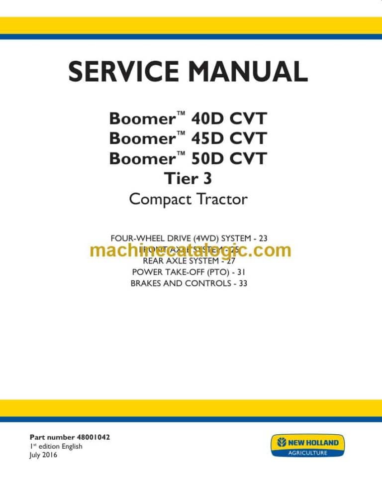 New Holland Boomer™ 40D CVT, Boomer™ 45D CVT, Boomer™ 50D CVT Tier 3 Compact Tractor Service Manual