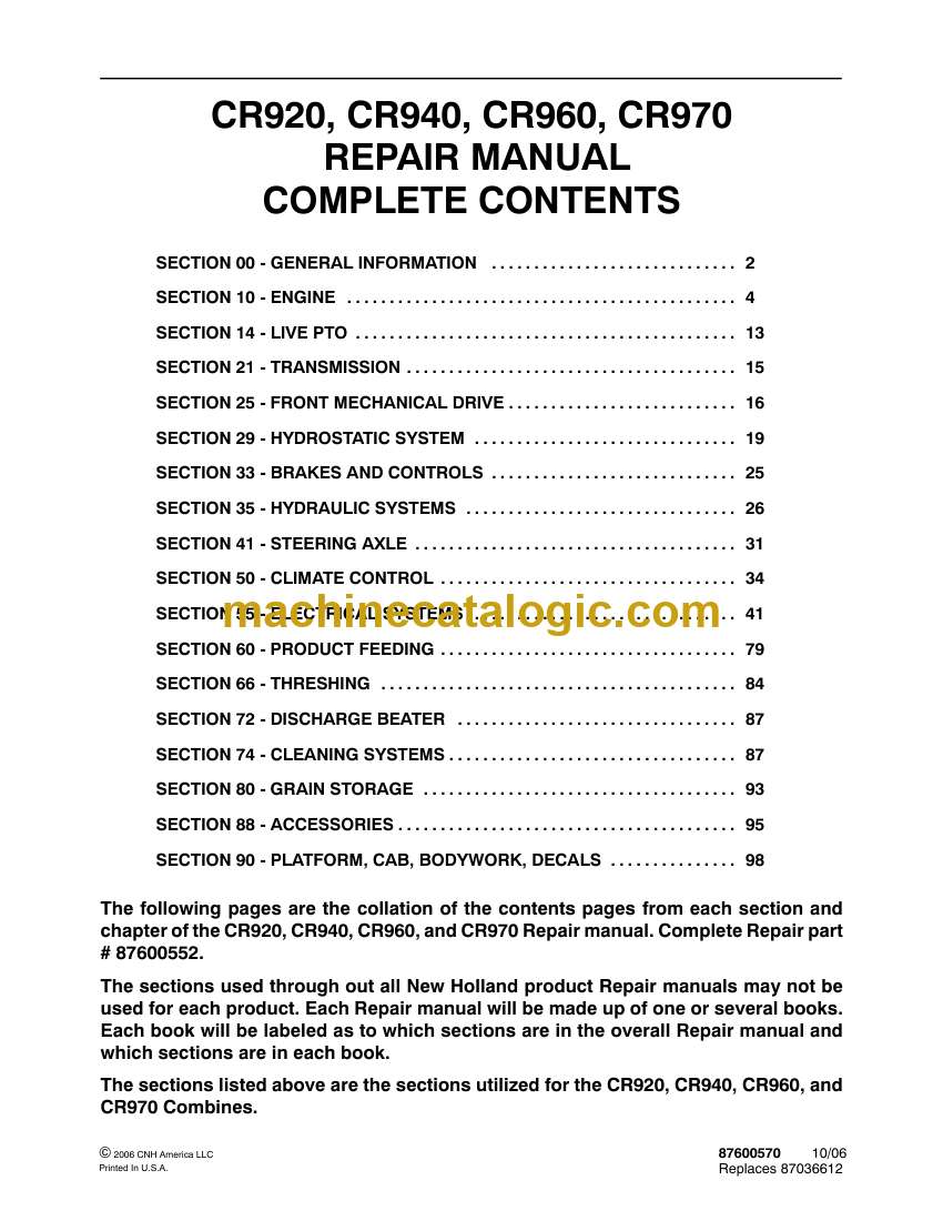 New Holland CR920, CR940, CR960, CR970 Repair Manual (87600552)