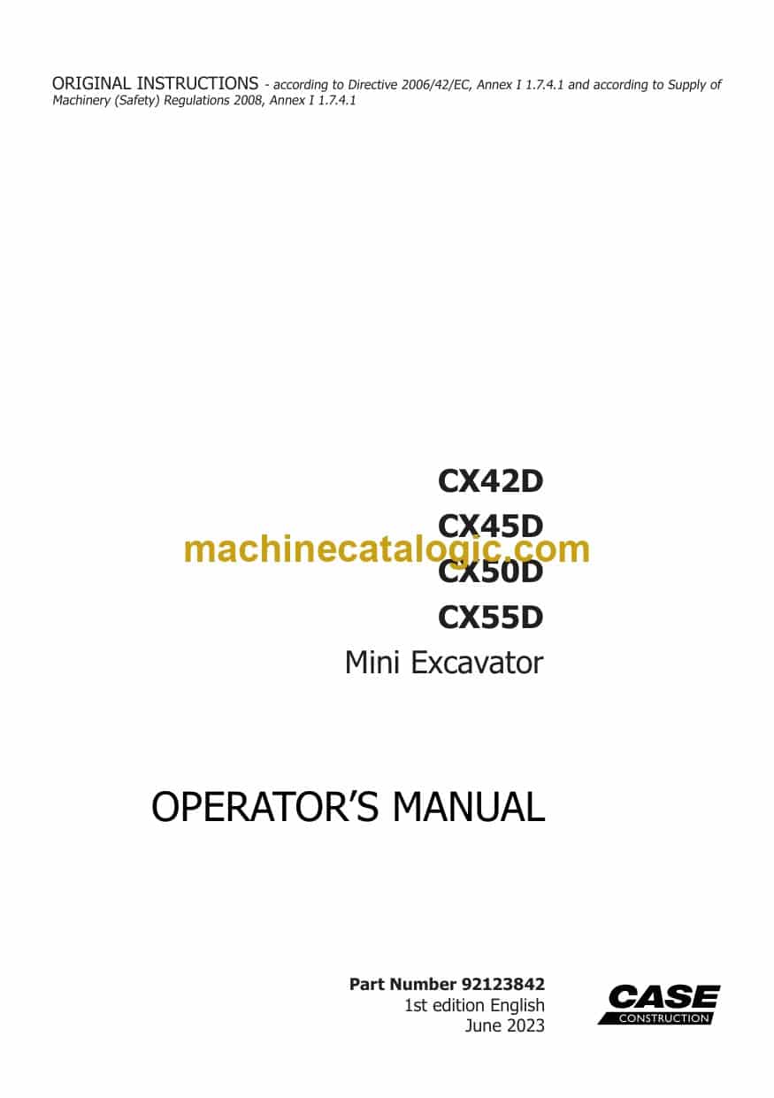 Model: CX42D, CX45D, CX50D, CX55D Mini Excavator