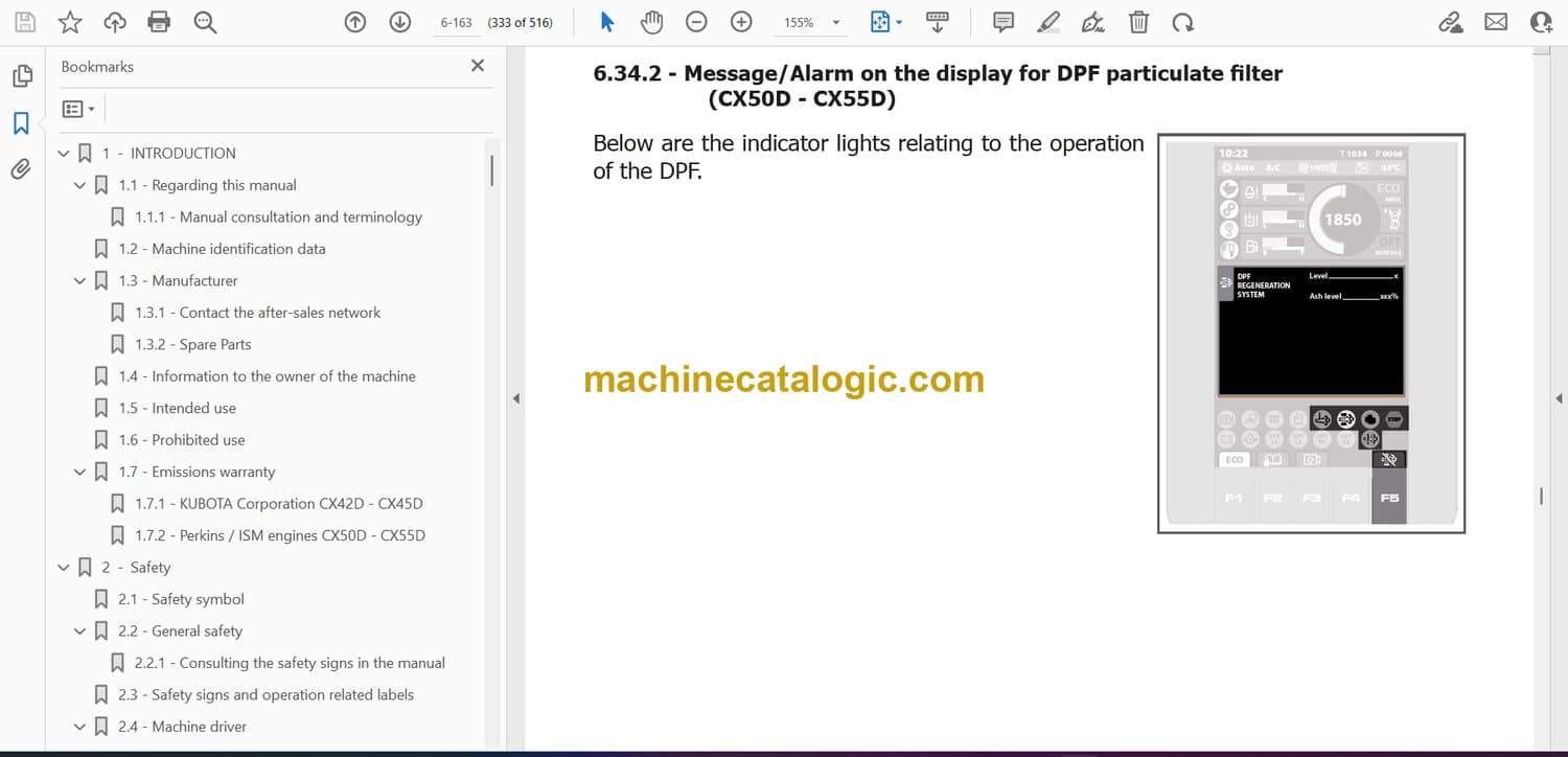 6.34 – Using the DPF Diesel Particulate Filter and Regeneration (CX50D – CX55D)