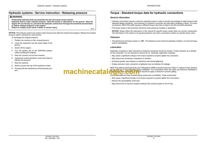 New Holland E17D, E18D, E19D, E20D Mini Excavator Service Manual (92316853)