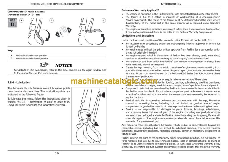 7.8 – Hydraulic thumb