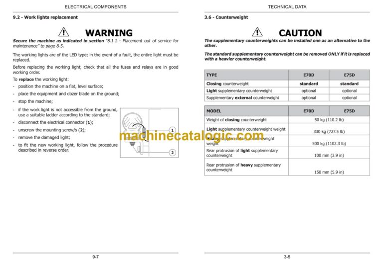 6.32 – Procedure for installing and removing the supplementary counterweight