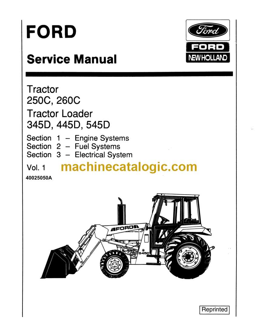 Model: Ford 250C, 260C Tractor, 345D, 445D, 545D Tractor Loader