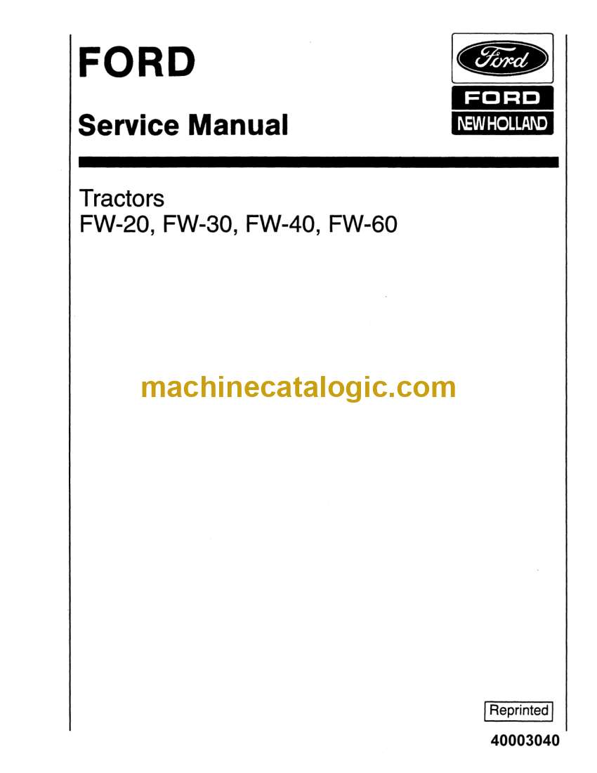Model: Ford FW20, FW30, FW40, FW60 Tractor