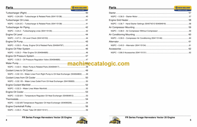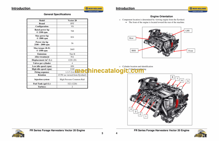 New Holland FR Series Forage Harvester Vector 20 Engine Index: