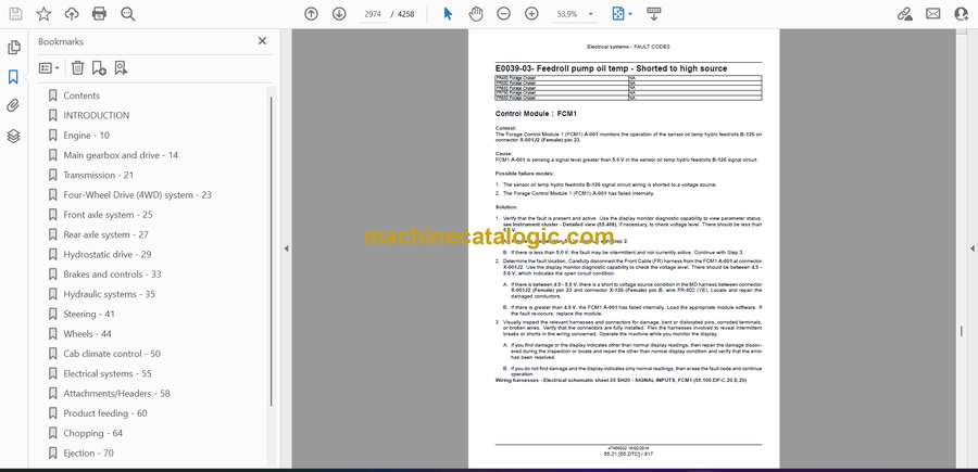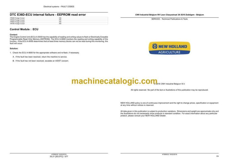 Model: FR480, FR550, FR650, FR780 Tier 4B Final, FR850 Tier 2 Forage Harvester