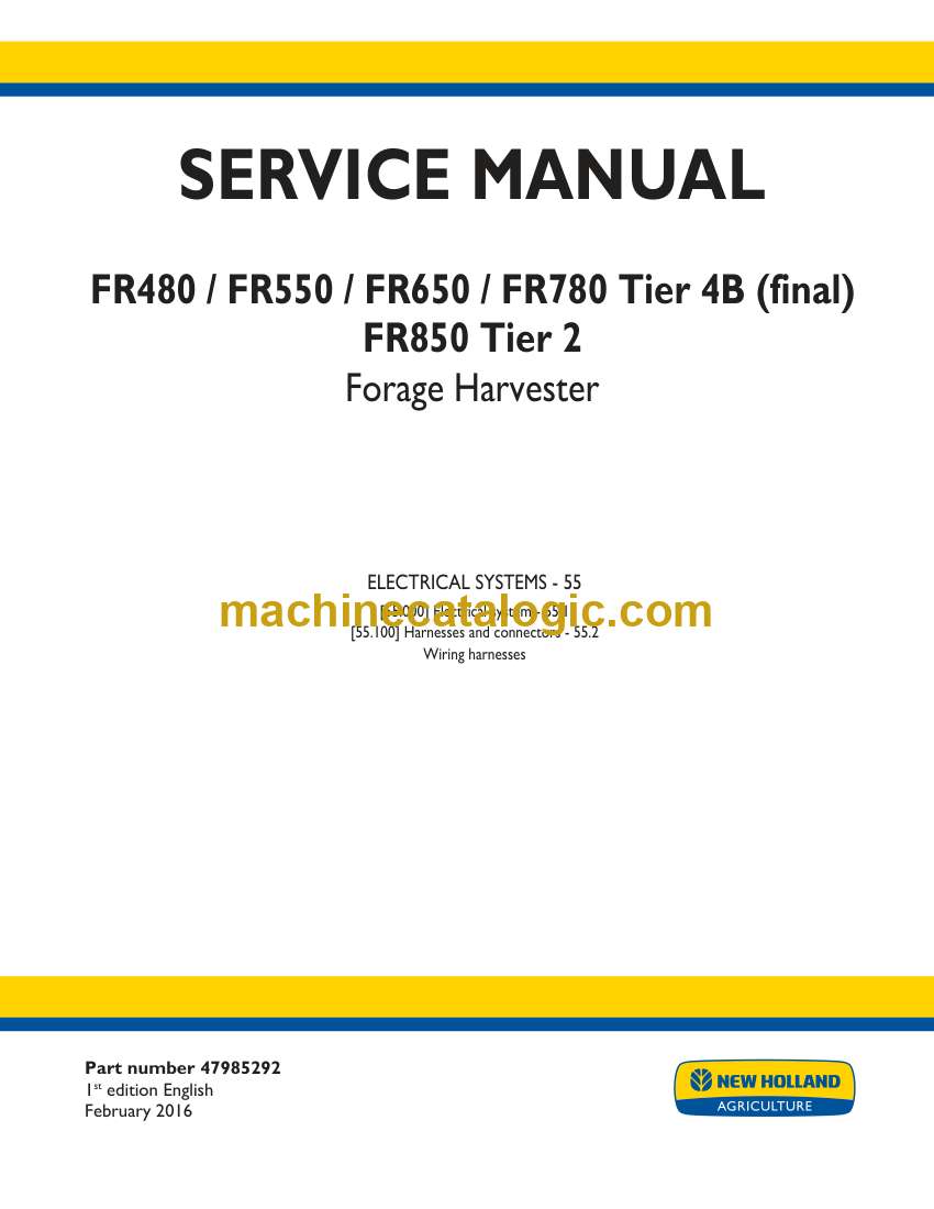 Model: FR480, FR550, FR650, FR780 Tier 4B Final, FR850 Tier 2 Forage Harvester