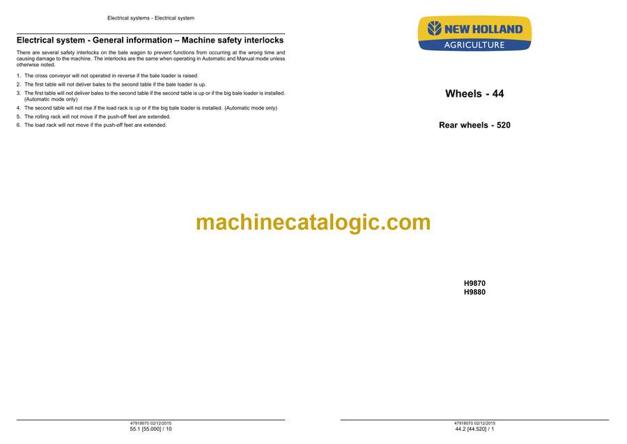 New Holland H9870, H9880 Bale Wagon Service Manual (47918070)
