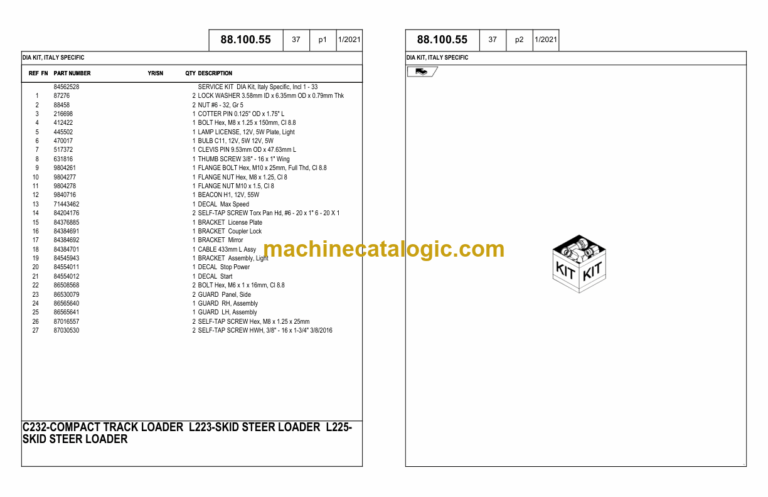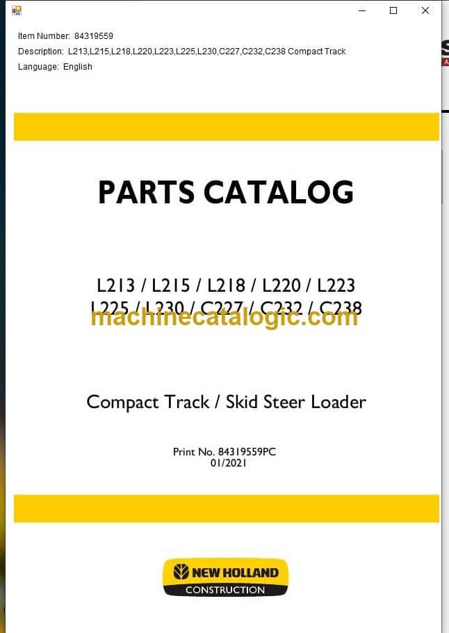 Model: L213, L215, L218, L220, L223, L225, L230, C227, C232, C238 Compact Track and Skid Steer Loader