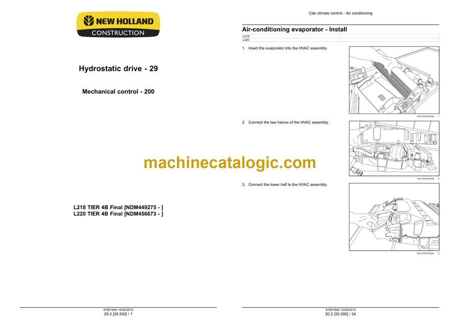 New Holland L218, L220 Tier 4B Final 200 Series Skid Steer Loader Service Manual (47851949)