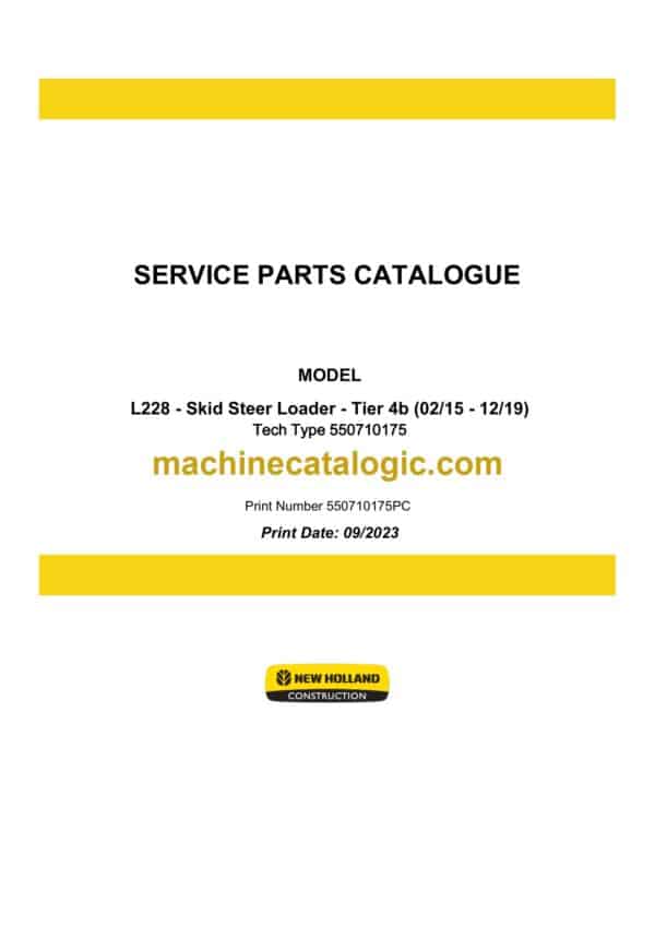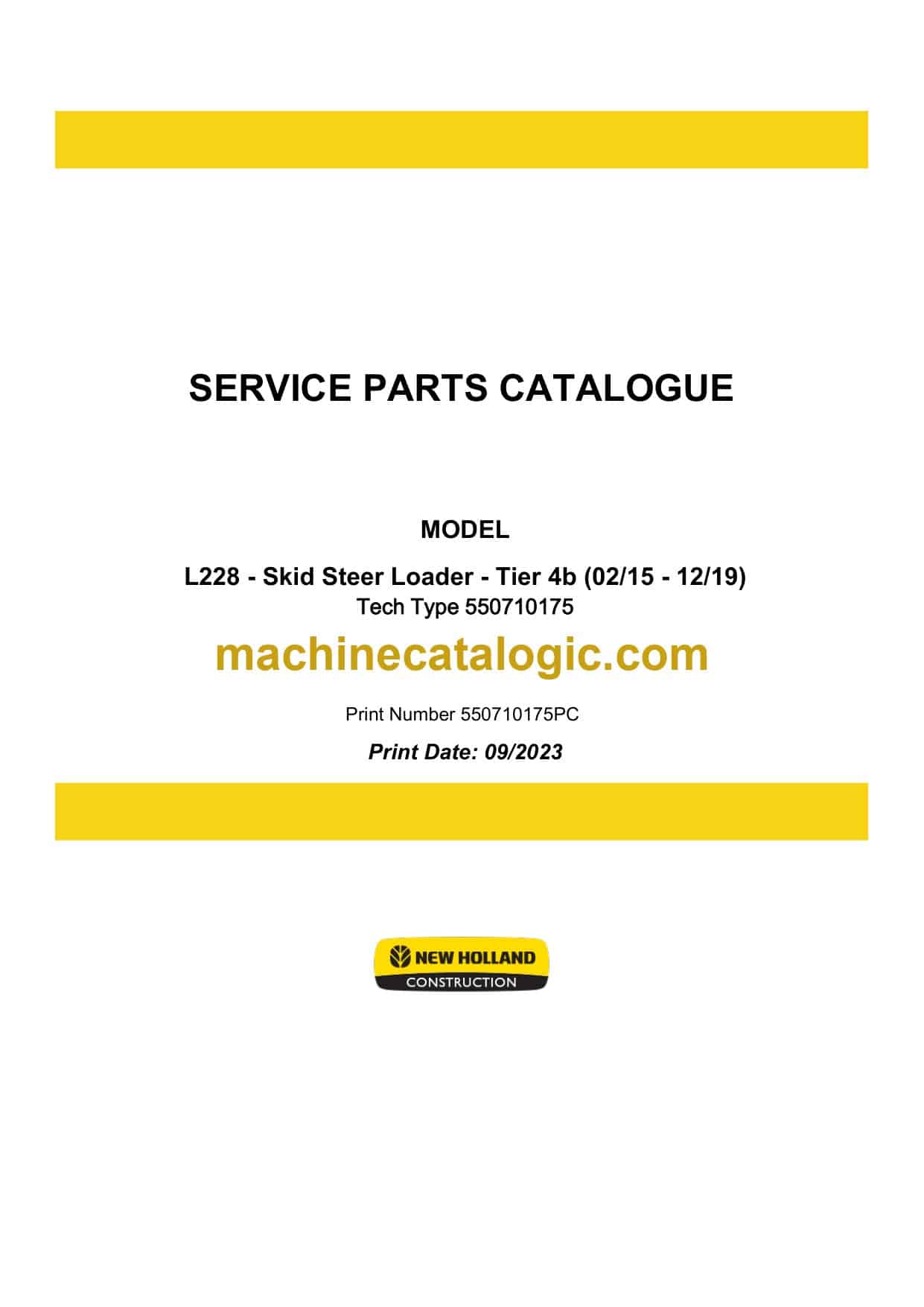New Holland L228 Tier 4B Skid Steer Loader Service Parts Catalogue