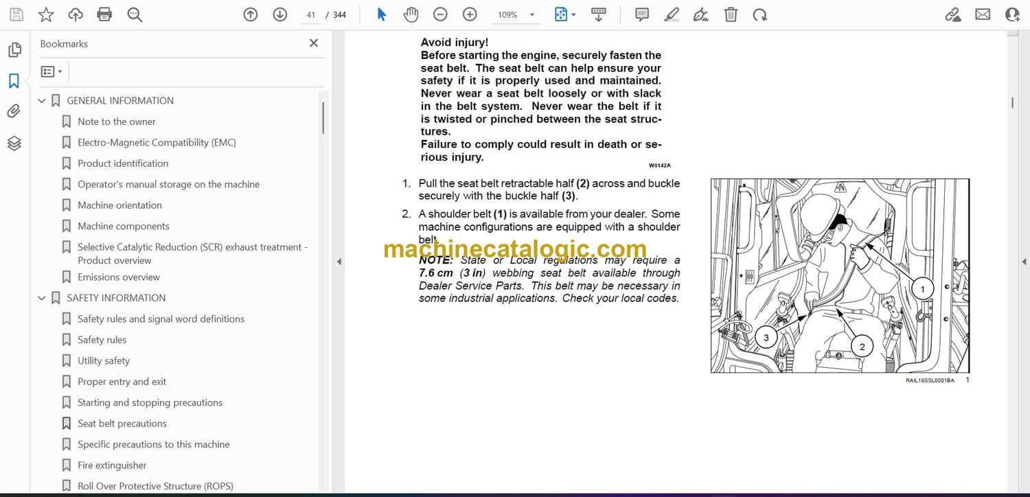 Operator’s manual storage on the machine