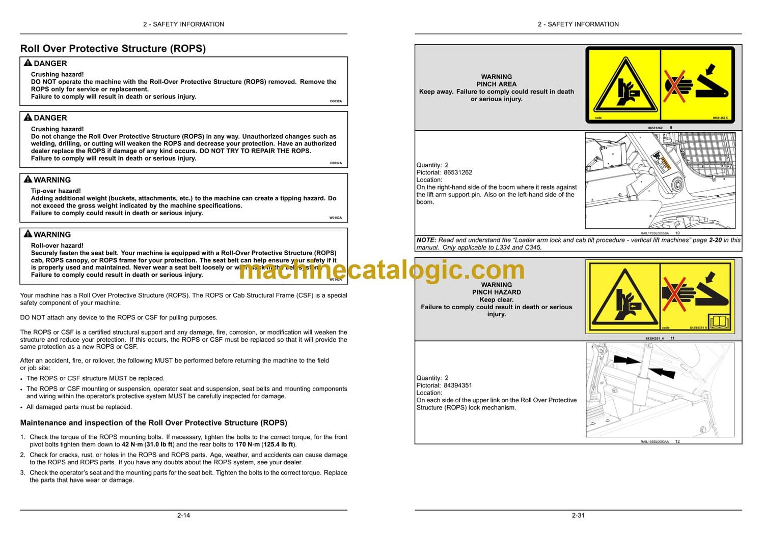 Loader arm lock and cab tilt procedure – vertical lift machines