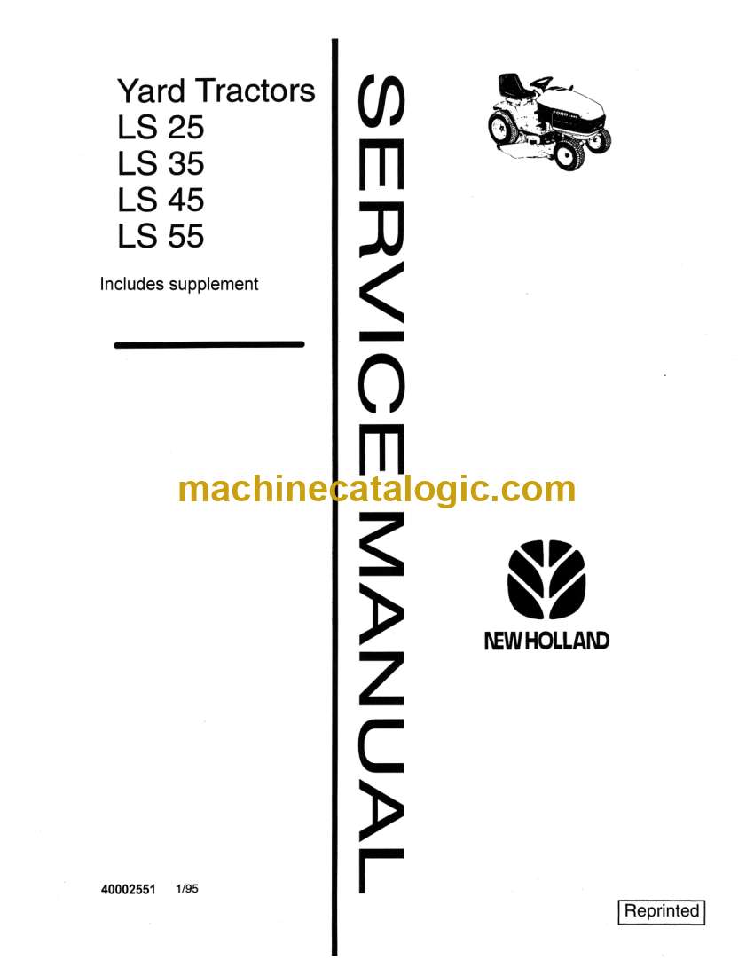 New Holland LS25, LS35, LS45, LS55 Yard Tractors Service Manual (40002551R0)