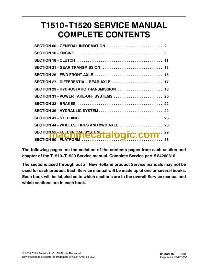 New Holland T1510, T1520 Tractor Service Manual (84260810)