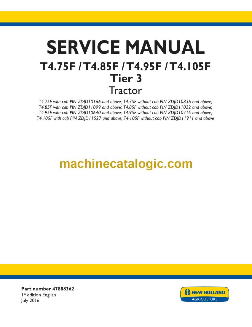 Model: T4.75F, T4.85F, T4.95F, T4.105F Tier 3 Tractor