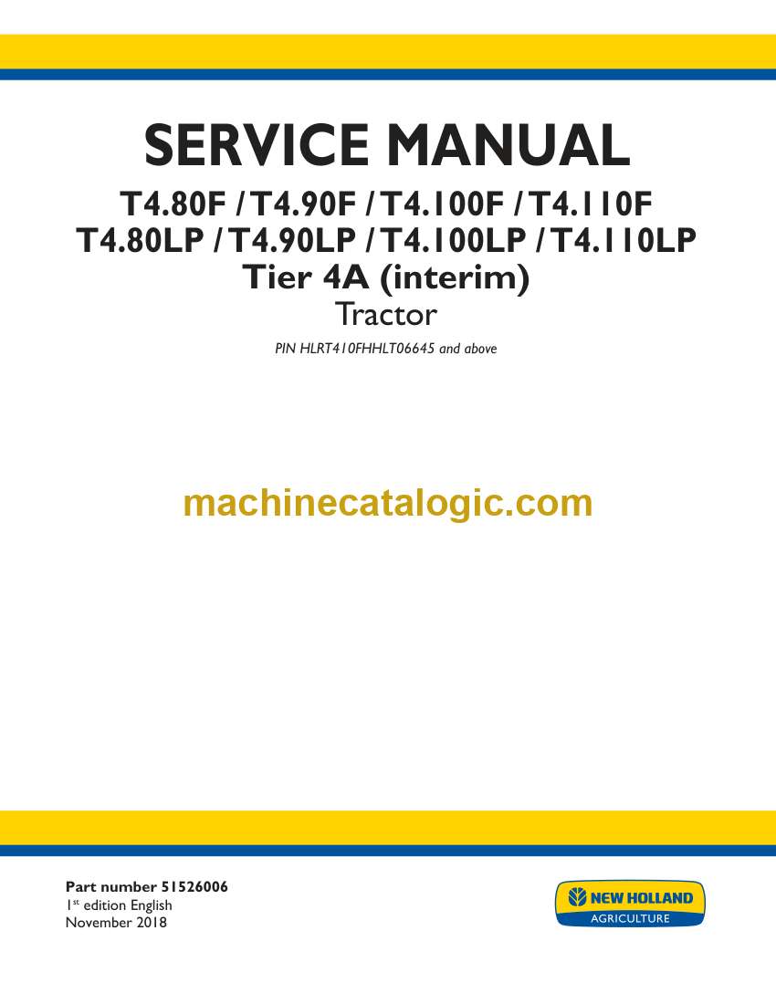New Holland T4.80F, T4.90F, T4.100F, T4.110F, T4.80LP, T4.90LP, T4.100LP, T4.110LP Tier 4A Interim Tractor Service Manual (51526006)